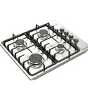 Поверхность: варочная панель • Тип поверхности: газовая • Рабочая поверхность: нерж.сталь • Число конфорок: 4 • Установка: независимая • Газовые конфорки: всего - 4 • Газ-контроль конфорок: есть • Тип управления: механическое • Переключатели: поворотные • Электроподжиг: есть, автоматический • Размеры: 590x510x80 мм • Размер ниши для встраивания: 555x475 мм • Цвет: панель - нерж.сталь