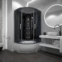 закрытая кабина • угловая • двери раздвижные • тропический душ • электронное управление • вентилятор • 100x100x215 см