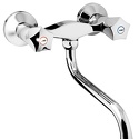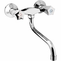 Назначение: кухонный • Конструкция: двухрычажный • Монтаж: вертикальный • Клапан: керамический • Материал: латунь, покрытие - хром • Подводка: жесткая • Монтажные отверстия: 2 отверстия • Форма излива: традиционная • Душевая лейка в комплекте: нет • Аэратор: есть • Эксцентрики в комплекте: есть • Донный клапан в комплекте: есть