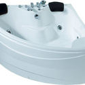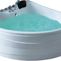 Материал: акрил • Расположение: отдельно стоящая, угловая конструкция • Форма: четверть круга • Количество мест: двухместная • Гидромассаж: есть, 5 форсунок • Подсветка: есть • Комфорт: подголовник • Смеситель в комплекте: есть • Размеры (ДxШxВ): 150x150x66 см