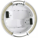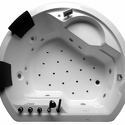 Материал: акрил • Расположение: отдельно стоящая • Форма: нестандартная • Количество мест: двухместная • Гидромассаж: есть, 11 форсунок • Аэромассаж: есть • Озонирование: есть • Подсветка: есть • Комфорт: подголовник • Смеситель в комплекте: есть • Размеры (ДxШxВ): 185x183x74 см