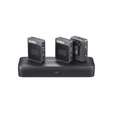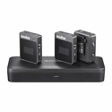 Комплект поставки- 2 петличных микрофона- 2 передатчика- приемник- зарядный кейс- комплект аудиокабелей 3.5 мм- комплект зарядных кабелей- 2 съемных ветрозащиты- ремешок- документация