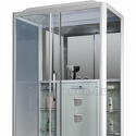 Закрытая кабина, полностенная, двери раздвижные, материал поддона: акрил, материал стенок: стекло, тропический душ, вертикальный гидромассаж, габариты (ШхВхД): 90x215x135 см