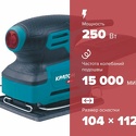 Тип: вибрационная • Питание: от сети • Мощность: 280 Вт • Максимальная скорость работы: 10000 об/мин (диск) • Вес: 2.1 кг • Крепление листа: зажимы • Длина листа: 230 мм • Ширина листа: 115 мм • Пылесборник: есть • Блокировка кнопки включения: есть • Прочее: регулировка частоты вращения
