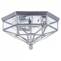 Накладной светильник стиля модерн для улицы имеет размеры 352х304х192 мм. Арматура светильника окрашена в хромовый цвет. Лампы в комплекте - отсутствуют. В светильнике применяются лампы накаливания или светодиодная LED-лампа. Цвет плафонов - неокрашенный, с прозрачной, рельефной поверхностью. Материал плафонов - стекло. Класс электробезопасности - I, степень пылевлагозащиты (IP) - 43. Максимальная мощность лампы (Вт) - 60. Светильник размещается на потолоке.