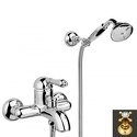 Назначение: ванна+душ • Конструкция: однорычажный • Монтаж: вертикальный • Материал: покрытие - золото • Монтажные отверстия: 2 отверстия • Форма излива: традиционная • Душевая лейка в комплекте: есть • Держатель для душевой лейки: настенный держатель • Донный клапан в комплекте: есть
