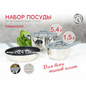 набор кастрюль • 5.4 л (24 см) • нержавеющая сталь • покрытие фторопласт • крышка стеклянная