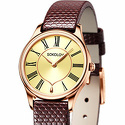 женские наручные часы • кварцевые • корпус золото • кожаный ремешок