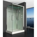 Закрытая кабина, полностенная, левосторонняя, двери раздвижные, материал поддона: акрил, материал стенок: стекло, турецкая баня, тропический душ, вертикальный гидромассаж, габариты (ШхВхД): 90x220x120 см