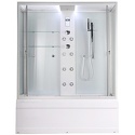 Закрытая кабина, полностенная, комбинированная с ванной, двери раздвижные, материал стенок: стекло, тропический душ, вертикальный гидромассаж, контрастный душ, габариты (ШхВхД): 82x220x148 см