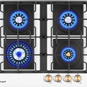 газовая на 4 конфорки • закаленное стекло • мощность: 10500 Вт • газ-контроль • решетки: чугун • независимая установка • размеры (ШхГ): 60x51 см